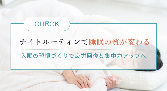患者様が日常的なストレスや緊張により自律神経のバランスを崩している場合、ナイトルーティンの習慣化は心身のリセットにもつながるため、睡眠の質向上に不可欠であるといえます。